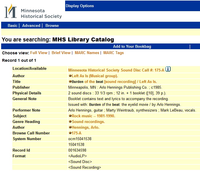 In 1985, Weintraub met Hennings and helped produce Hennings' double album novella release Burden of the Beat -The Eyelid Movie. The self-released project was sponsored by the Plains Art Museum. In addition, it was reviewed by the Minneapolis Star & Tribune as one of the most ambitious records of 1985. The Fargo Forum wrote: “a must hear and read.” City Pages Newspaper however, wrote: “it was released by mistake.” The Minnesota Historical Society archived the project.