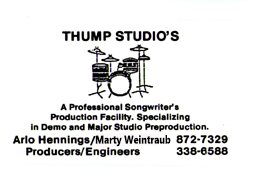 From there the two went into the recording studio business together. The first studio was called Thump Studios, which operated in the kitchen area of Hennings one bedroom apartment.